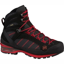 De Makra Combi GTX is een robuuste schoen van Hanwag die zorgt dat u ook bij lange tochten in het hooggebergte of bij gletsjer wandelingen een goede ondersteuning zult hebben. De bovenzijde van deze schoen is gemaakt van soepel en stevig suède met daardoorheen lichtgewicht en robuust cordura materiaal. Zo zal de bovenkant van de schoen uw voet beschermen en hem ondersteunen. De naden zijn extra verstevigd zodat de schoen zelfs in de meest uitdagende omstandigheden heel zal blijven. De voering is gemaakt van speciaal Gore-Tex materiaal dat water buiten houdt maar zorgt dat waterdamp wel de schoen uit kan. Zo zullen uw voeten niet nat worden door de neerslag maar zullen ze toch kunnen genieten van veel ventilatie voor een langer fris gevoel. De Vibram buitenzool is extra stroef en zorgt dat vuil niet in het profiel blijft zitten. Dit profiel is extra diep gemaakt voor een nog betere ondersteuning tijdens het klimmen. Bij de tenen van de schoen zit een apart klim gedeelte zodat u nog beter omhoog kunt komen. Op de hiel zit een bevestigingspunt zodat u eenvoudig halfautomatische stijgijzers op de hiel kunt monteren.
